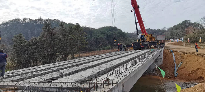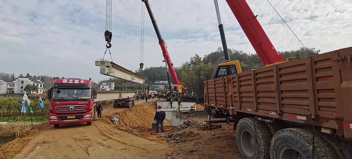 2021年12月15日上午10點(diǎn)55分,隨著最后一片混凝土梁板穩(wěn)穩(wěn)地落在橋梁支座上,歙縣跳石至呈坎農(nóng)村道路改建工程鮑家橋梁板吊裝工作順利完成。