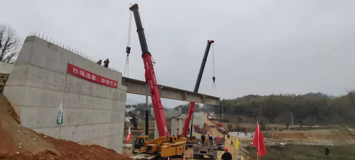 2022年1月8日,楊峰嶺橋開始吊裝,集團公司領導也高度重視在建項目超危大分部分項工程施工,我部按照公司要求全程監(jiān)督跟蹤,協(xié)助配合好項目完成吊裝,做好警戒、旁站等工作。2022年1月9日下午17:20分左右,楊峰嶺共計12片梁板已順利安全完成吊裝,為2022年安全生產管理工作的良好形勢拉開了序幕。