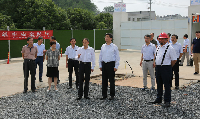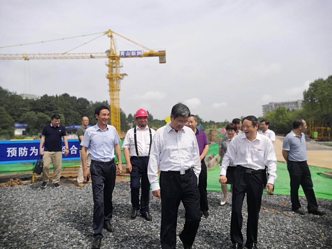 7月2日上午,黃山市市長孫勇、副市長程紅一行來我公司承建的黃山學(xué)院實(shí)習(xí)實(shí)訓(xùn)中心項(xiàng)目調(diào)研。校黨委書記汪楓,黨委副書記、校長李鐵范,校黨委委員、副校長張德學(xué)、集團(tuán)公司董事長李文武等陪同參加并對(duì)項(xiàng)目的總體情況作了簡(jiǎn)要匯報(bào)。